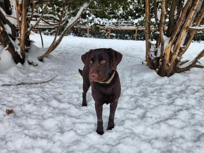 Joplin, une femelle Labrador Retriever anglaise brune ,elle provient du Mississipi , possède une lignée de chasse impressionnant. Avec sa stature imposante, elle cherche toujours à être près de son maître. Elle adore les balades et profite des grands espaces pour s'amuser. Sa présence attentive devant la télévision est un régal. Son regard doux nous pousse à lui prodiguer de grosses caresses.