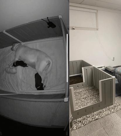 Nous avons une chambre de maternité pour nos femelles. Nous dormons avec elles 2 semaines avant la mise à bas et 2 semaines après celle-ci. Pour leur sécurité et leur tranquilité, la chambre est munie de caméras et il y a de la musique relaxante en tout temps.
