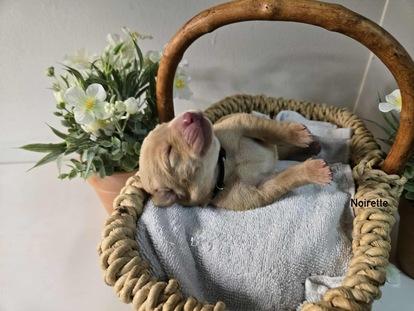 Mère : Thelma, couleur jaune Redfox, une super maman énergique, attentionnée, super écoutante, elle aime jouer et ce faire câlinée.
